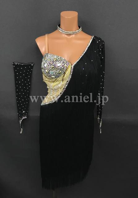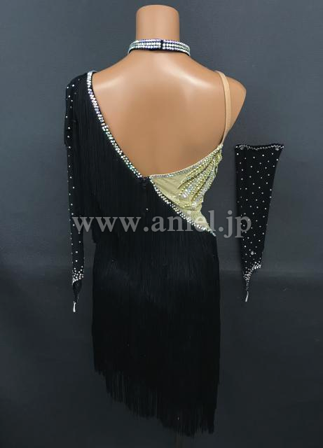 黒のフリンジがよく踊るドレスです。