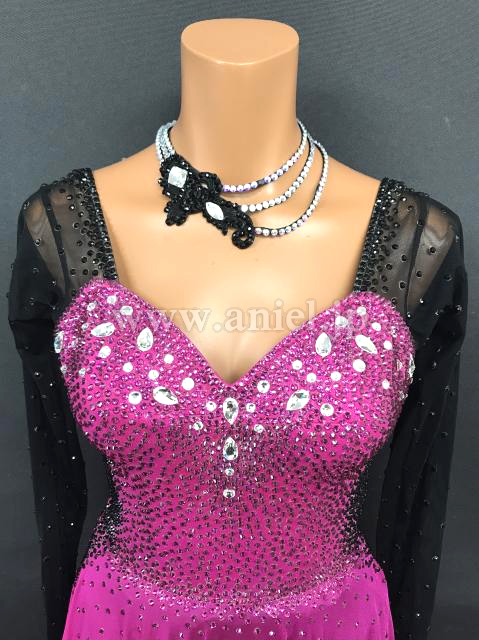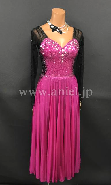 ピンクのパソドレスは一気に華やかな色合いに。スタンダードとラテンのデモにも使用できます。