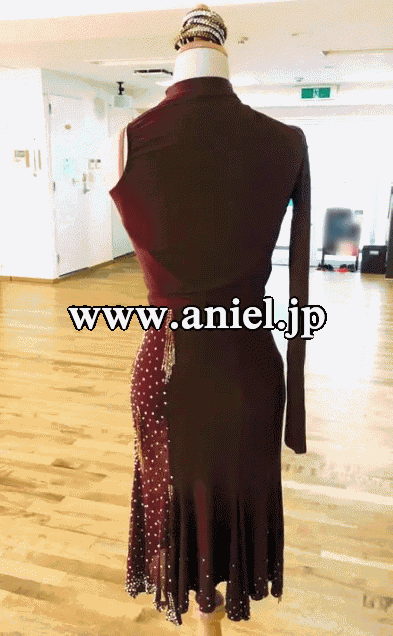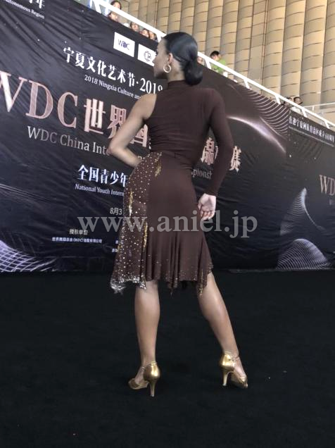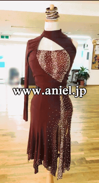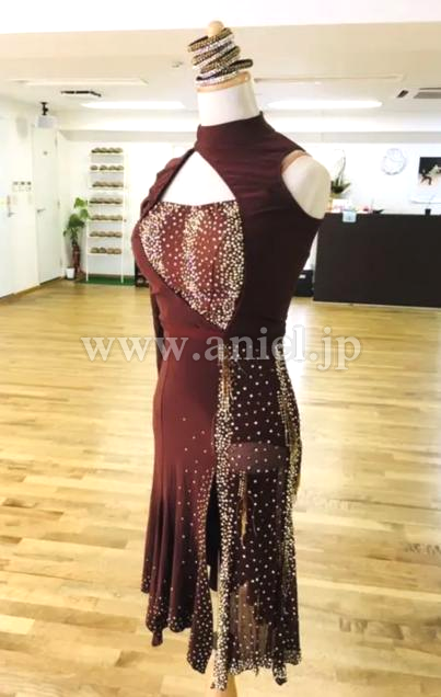 プロのウクライナチャンピオン着用のお洒落なブラウンのラテンドレス です。