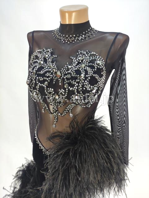 たっぷりの羽根スカートが豪華なラテンドレスです。