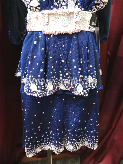 濃い青に白のベルトとオーロラの石が映え、ハッキリとした印象を与えます。