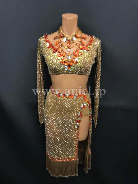 オレンジ系のカラフルな大粒ストーンが豪華です。