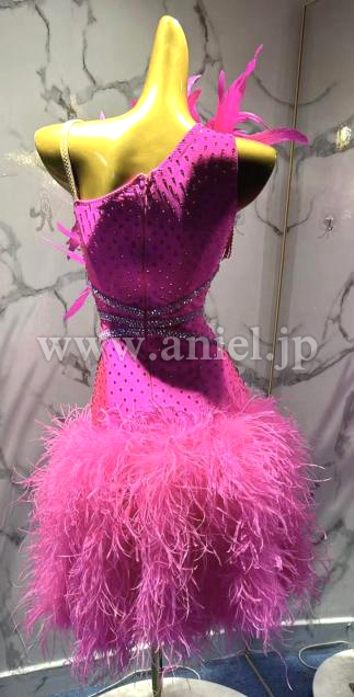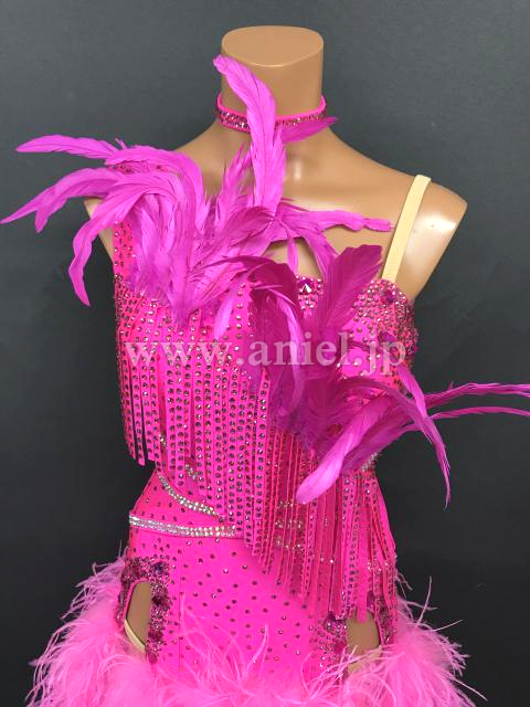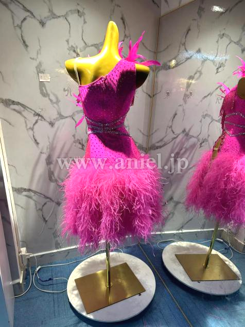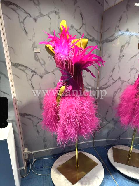 胸元の立体の羽根がインパクトのあるドレスです。