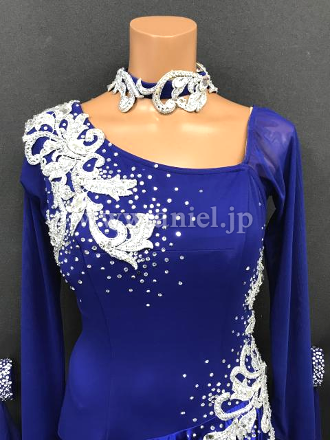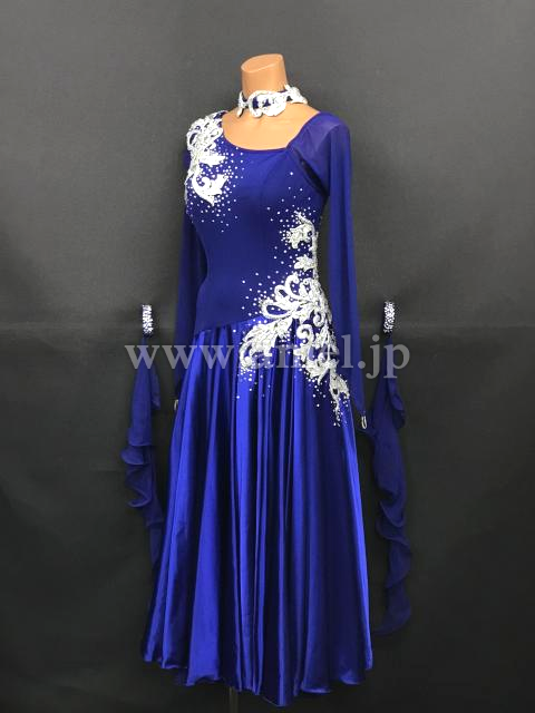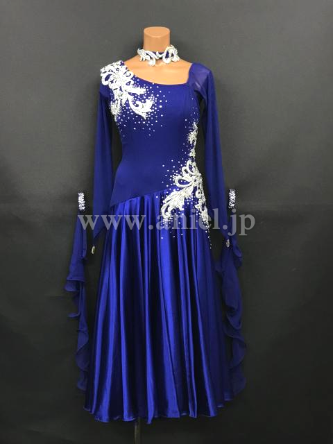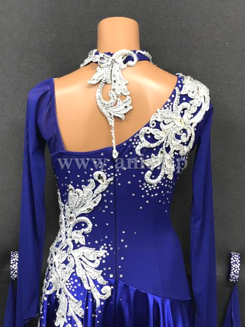 美しい青にシルバーのモチーフが映えるドレスです。