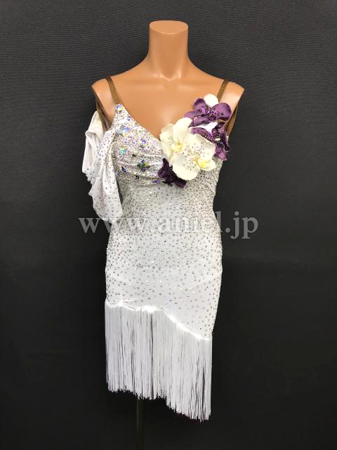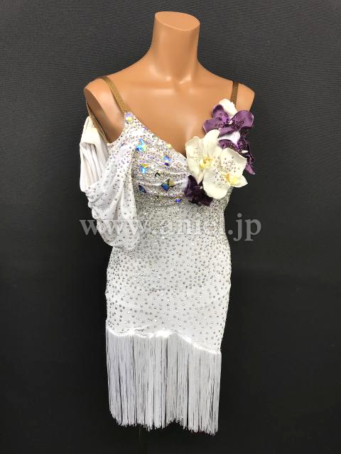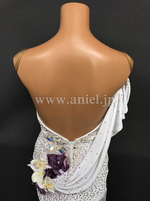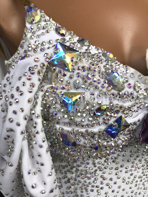 白のボディにオーロラスワロフスキーがたっぷりでキラキラと光るドレスです。