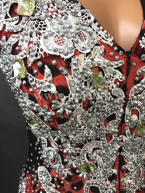 赤に黒の豹柄スカートがインパクトのあるドレスです。