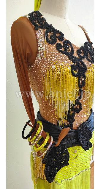 イエロー&ブラックの配色がフロア映えし、フリンジが踊りをサポートしてくれます。