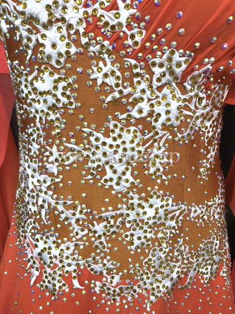 ドレスのボディに白のレースにストーンがたっぷり飾られています。