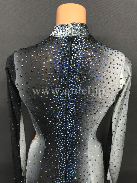 全体に黒、青、オーロラクリスタルのストーンがたっぷり使われています。