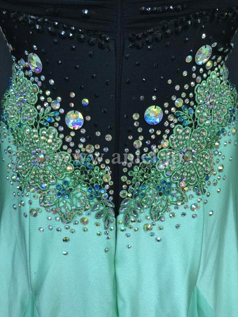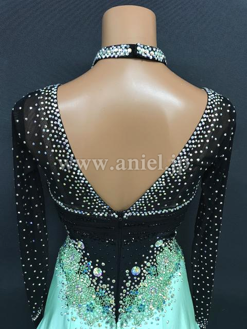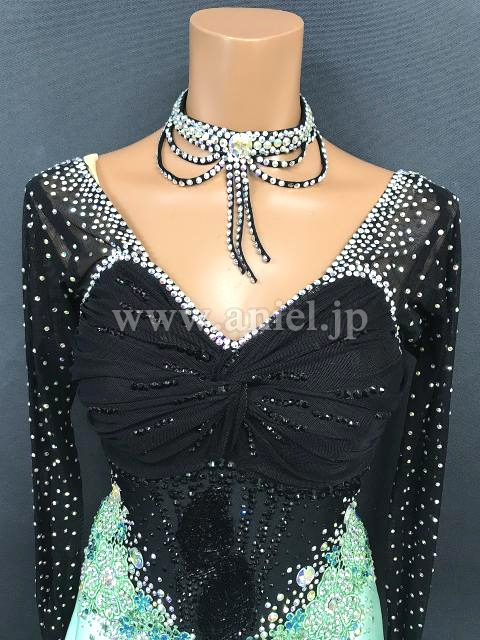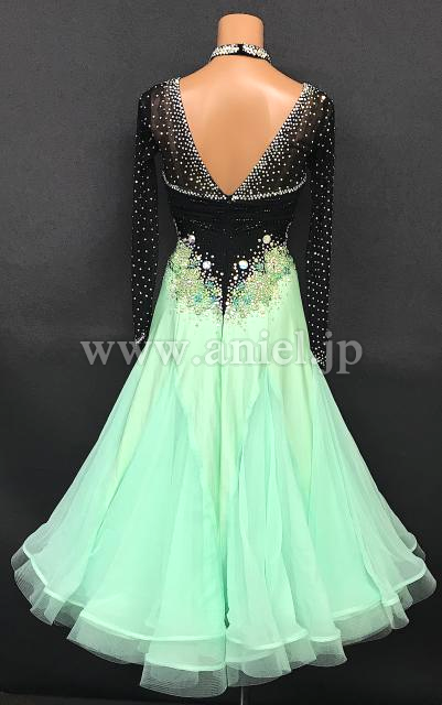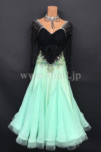 スッキリした黒のボディにペパーミントカラーの可愛らしいスカートの組み合わせのドレスです。