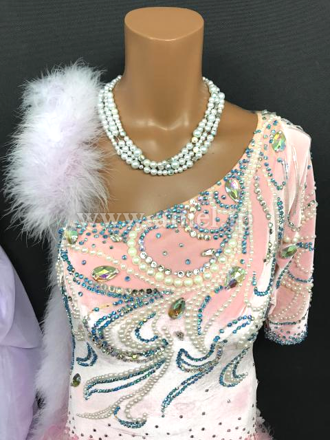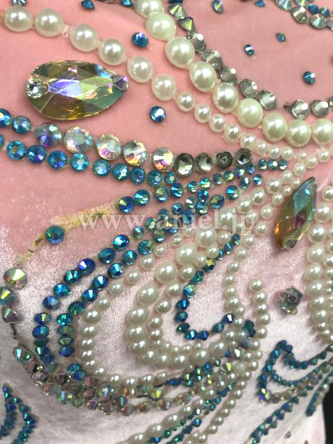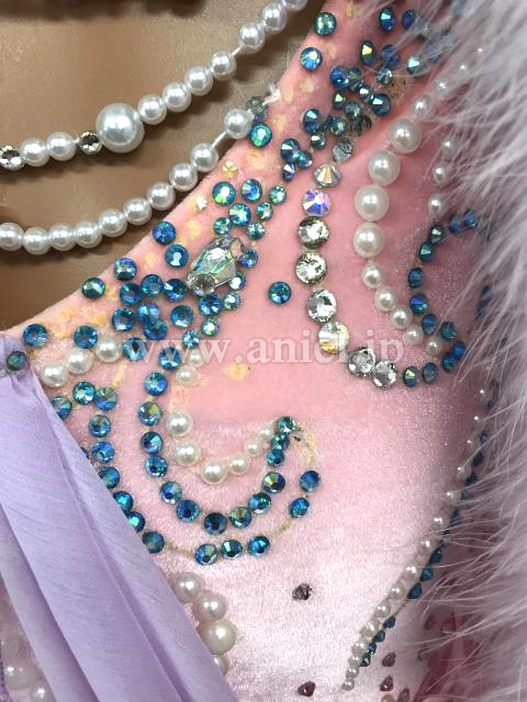ベルベットボディにパールとストーンで装飾されたドレスです。