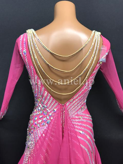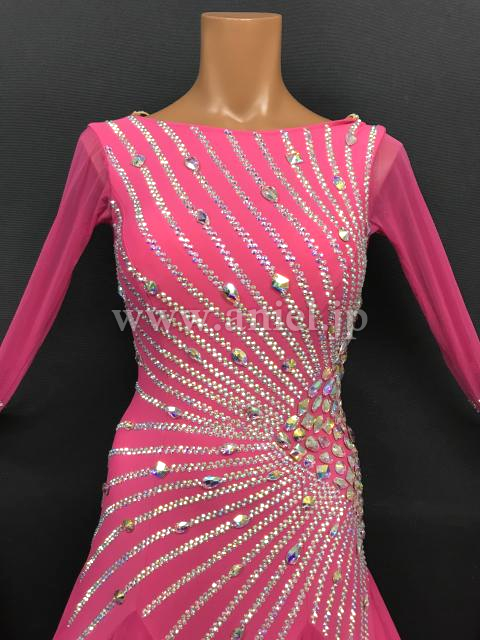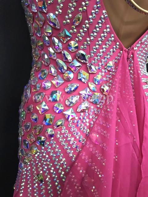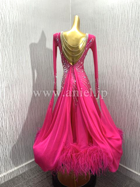 ピンクの羽根豪華なドレスです。