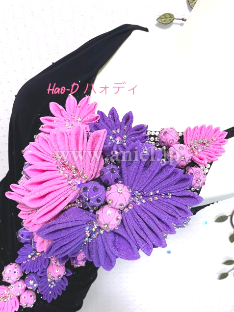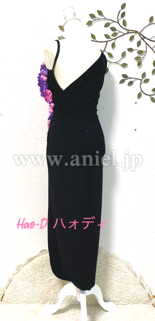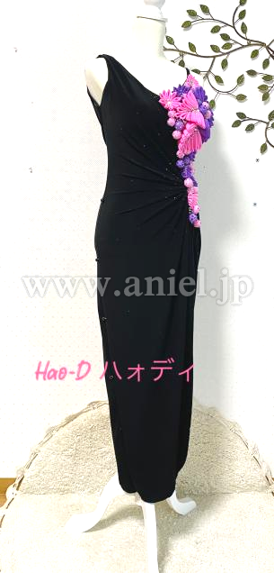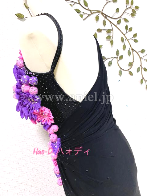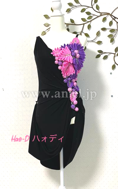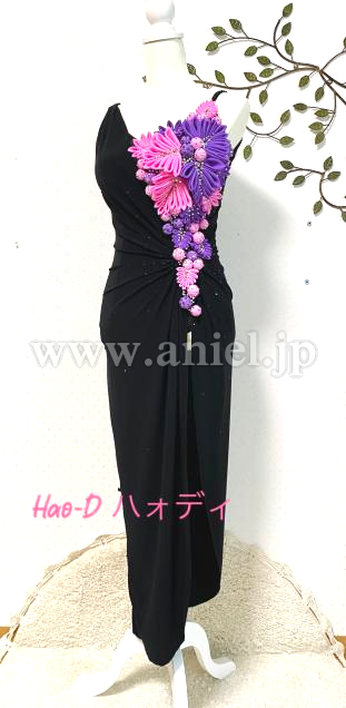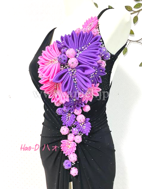 繊細なちりめん細工の立体モチーフを装飾した【和】テイストのラテンドレス