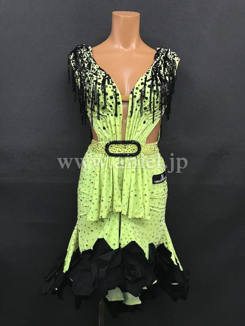 全体的にストーンが使用されており、胸元部分は、ブラックのストーンとビーズフリンジを使用して、強さを出します。