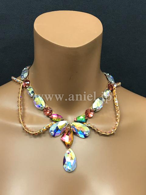 ボディはゴールドのモチーフレースにスワロフスキーストーンが装飾されています。