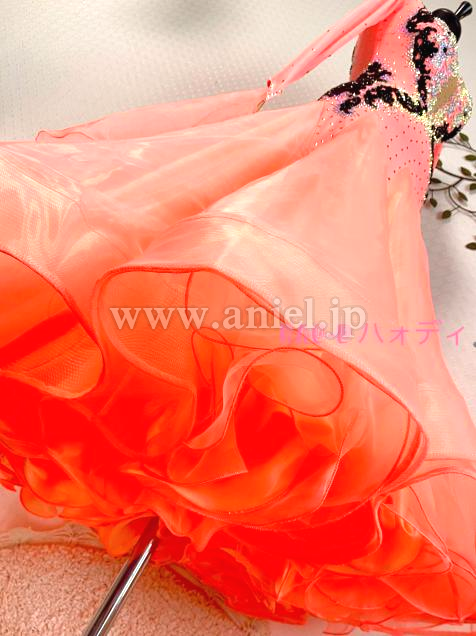 各裾にホースヘアやワイヤーを付け、綺麗なAラインを作り、軽くて踊りやすい