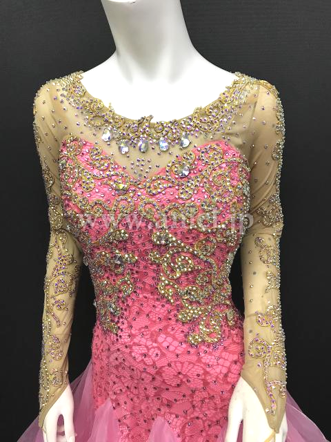 ピンクレースにゴールドモチーフの装飾が華やか。