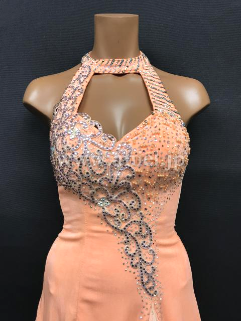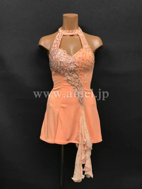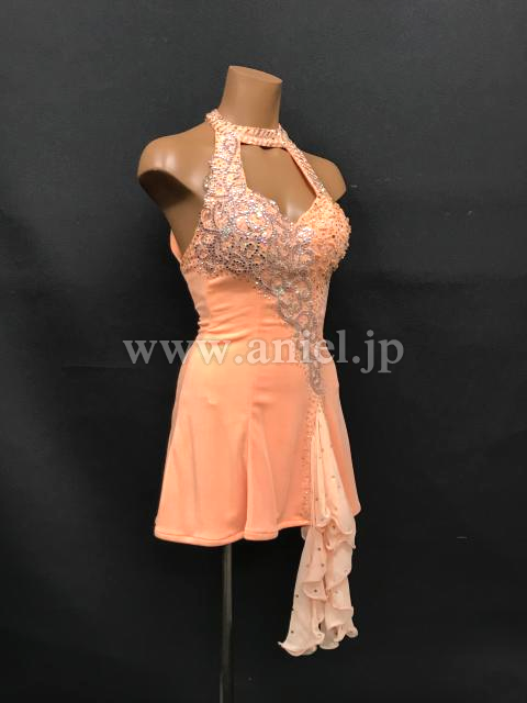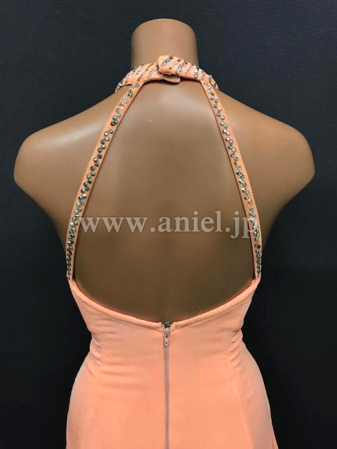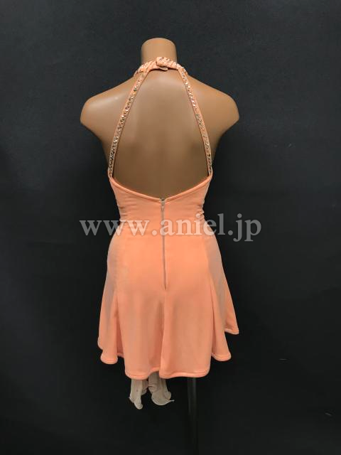 淡いオレンジカラーが可愛らしいミニ丈ドレスです。