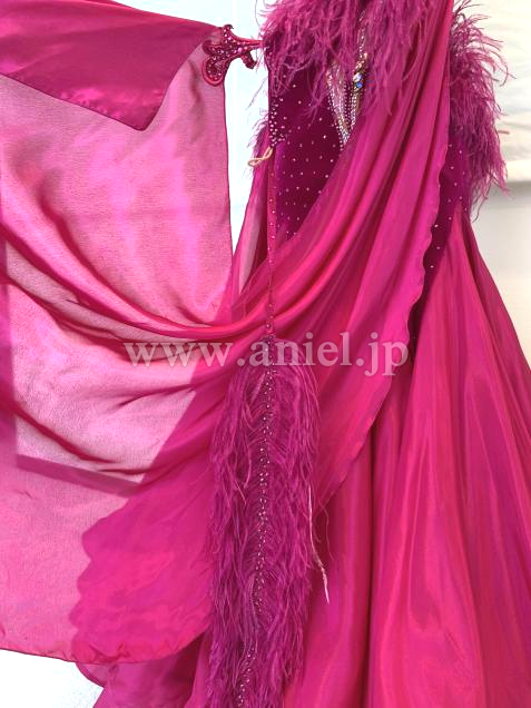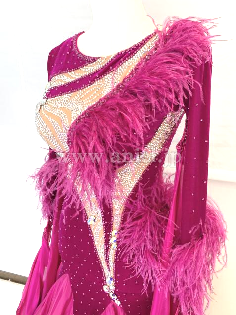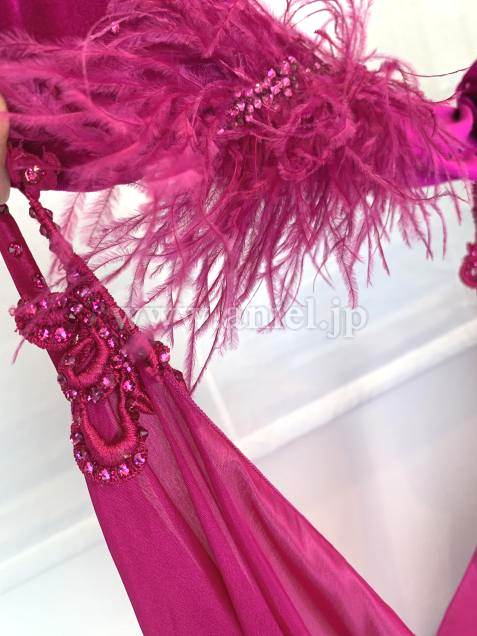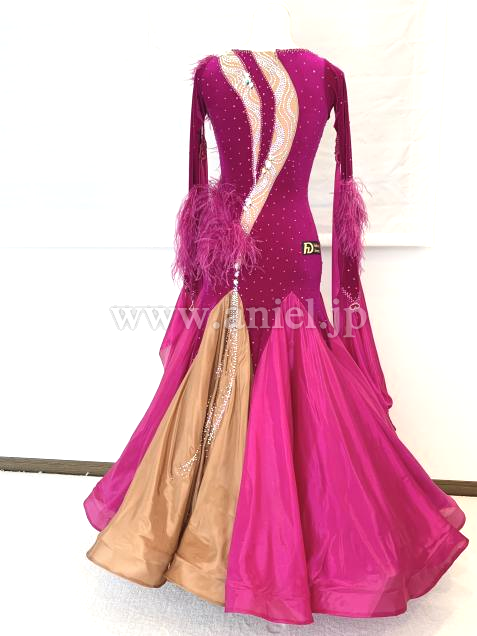 背中のファスナーがカーブになっており、大変凝った造りです。スカートもよく舞い、色々なプロに、試合で勝てるドレスの造りになっているとわかる、と感心されました。