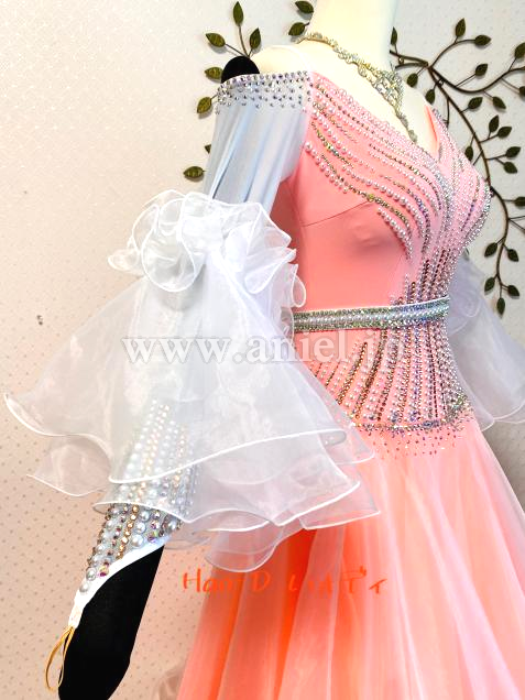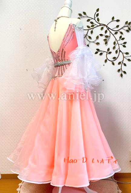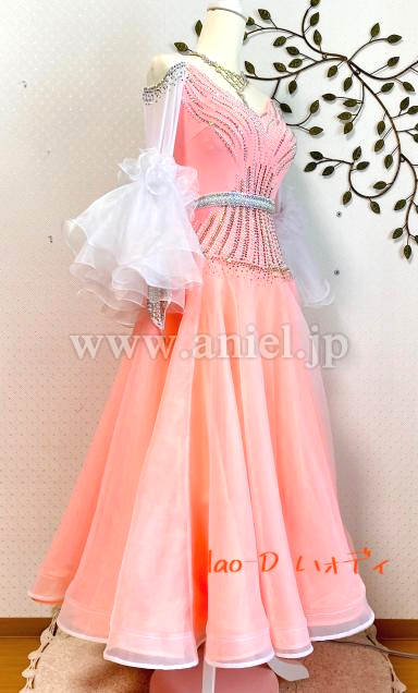 ハリのある円形スカートは踊ると軽やかに大きく広がり、ワルツやスロー、クイックにぜひお勧め