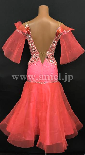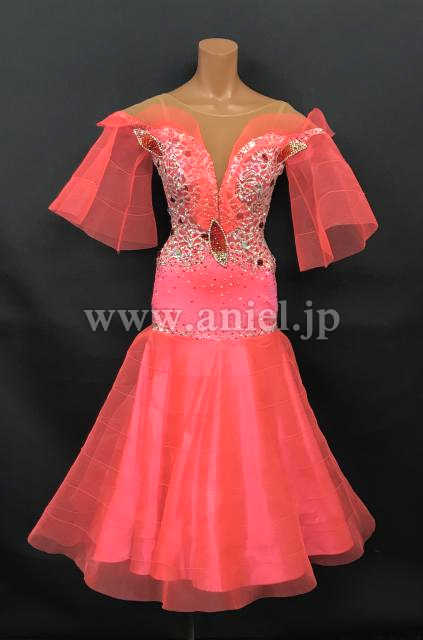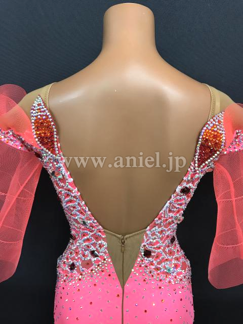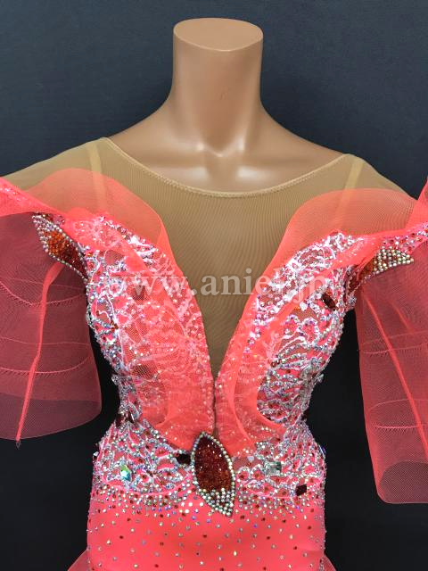 オフショルダーデザインでデコルテを綺麗に見せてくれますがベージュネットで覆われているので露出は控えめです。