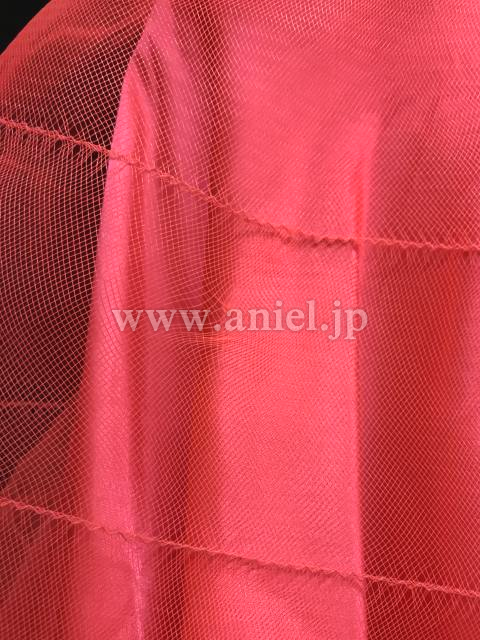 ホースヘアで作られた袖、スカートが立体感があり個性的なラインを出すドレスです。
