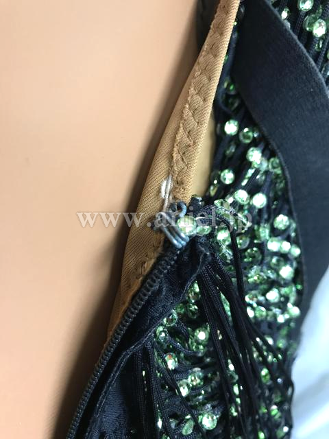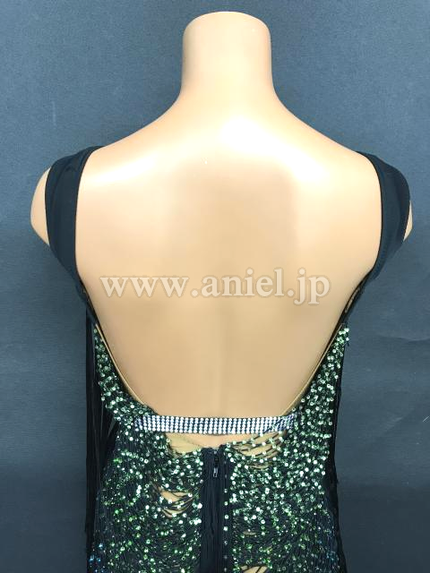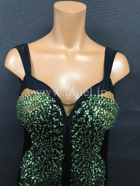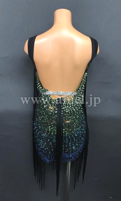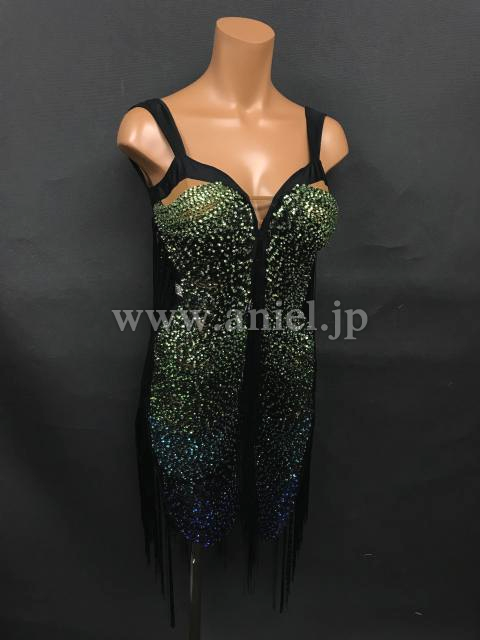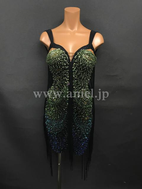 ボディに渡されたフリンジにストーンがびっしり貼られた豪華なドレスです。