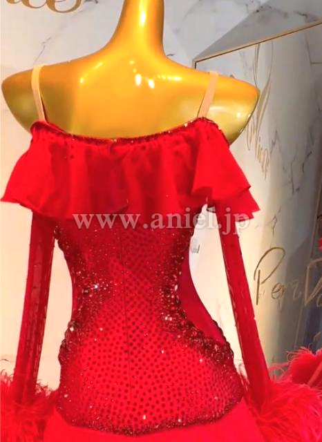 オフショルダーデザインのフリルがキュート。