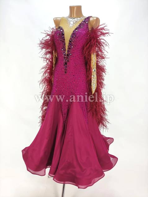 上品なワインレッドカラーのドレスです。