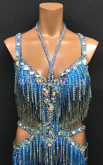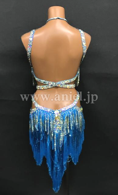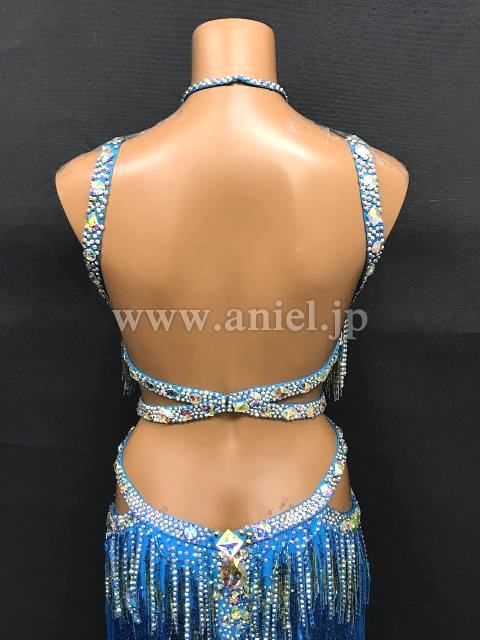 水色のフリンジミニ丈ドレス