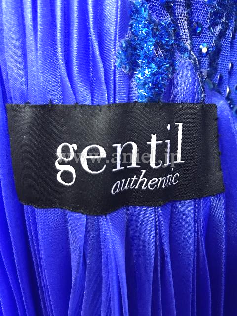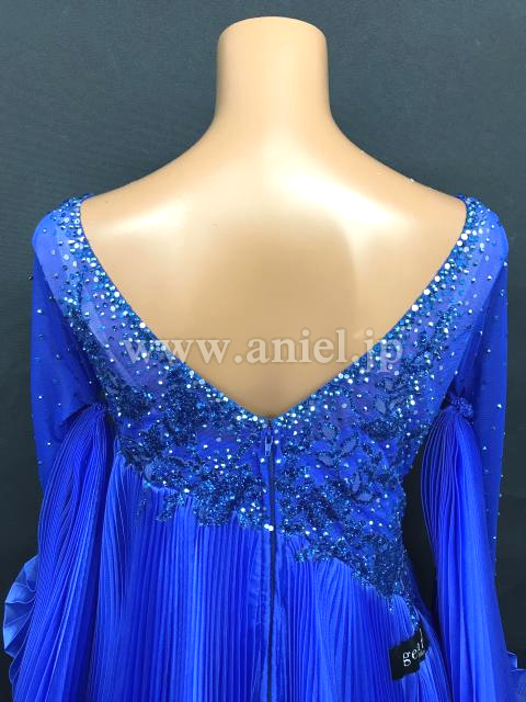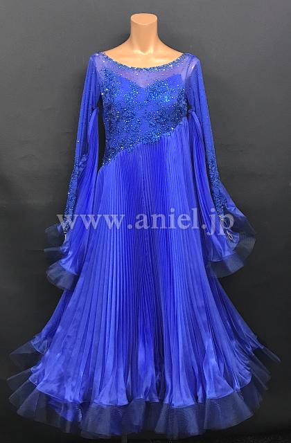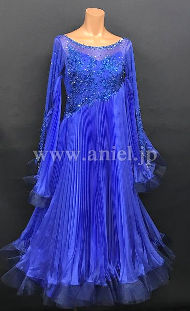 斜めにかけられた美しいプリーツスカートが特徴的なドレス