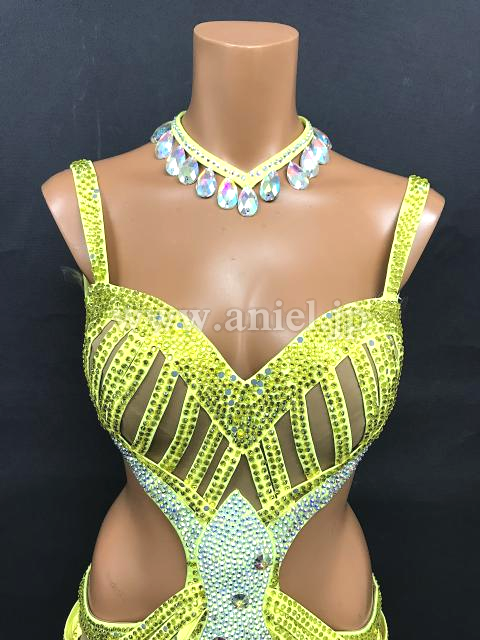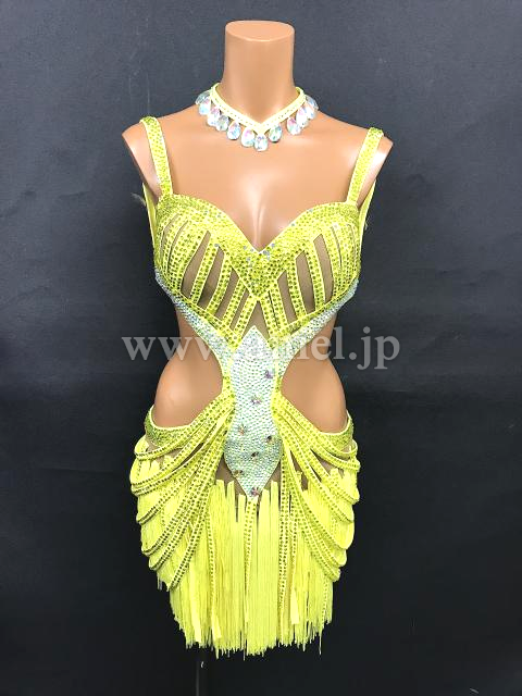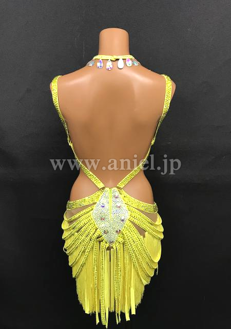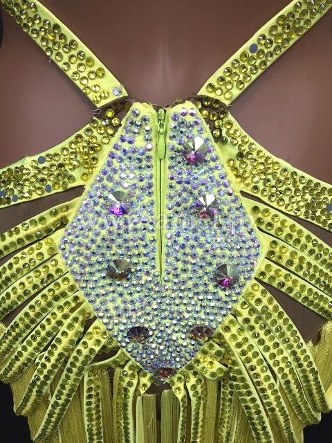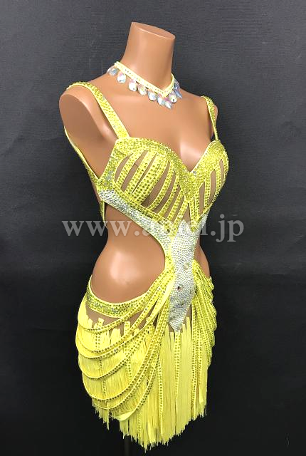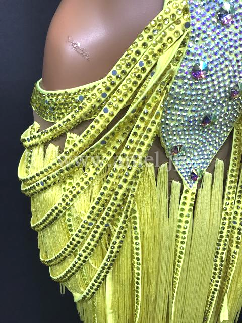黄色のミニ丈フリンジドレス