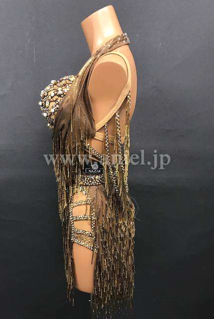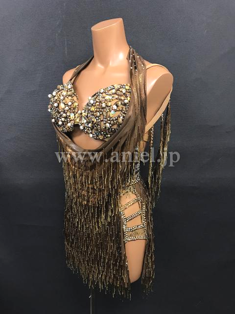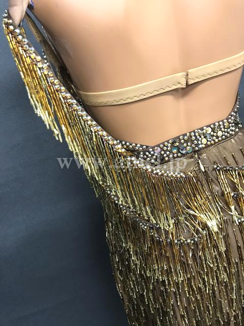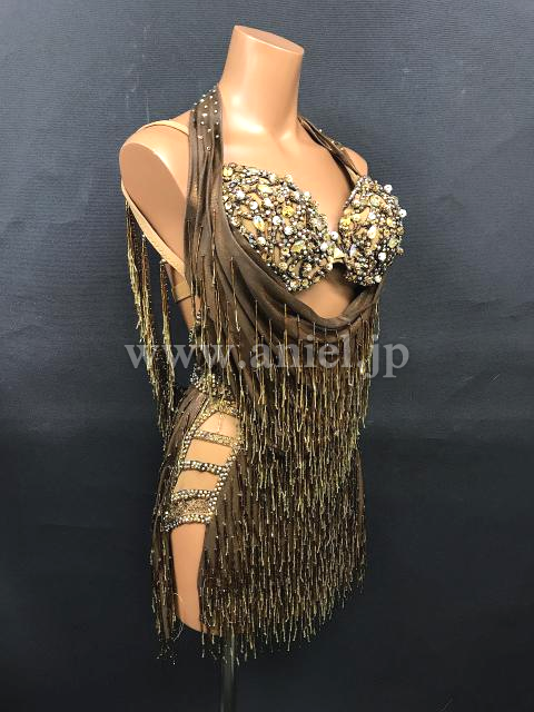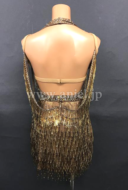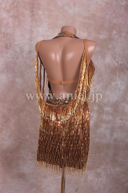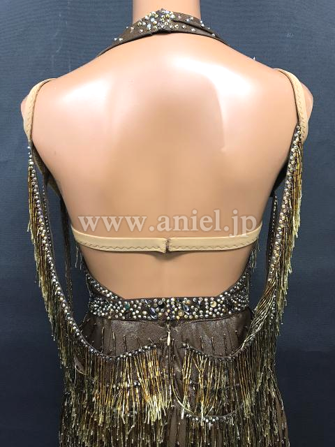 濃いブラウンに、ビーズフリンジがたっぷりでキラキラととても輝くドレスです。