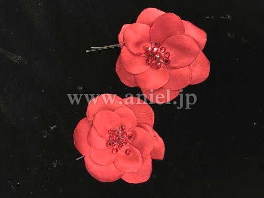 リボンベルトは赤とベージュの2種類。同じくEM製作の髪飾りをおつけします。