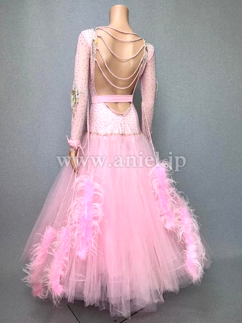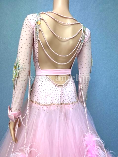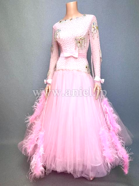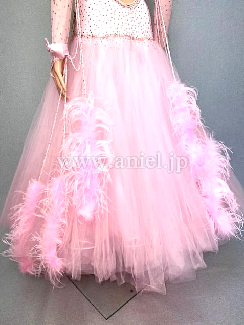 淡いピンクにピンクのオーストリッチファーフロートが可愛いドレスです。