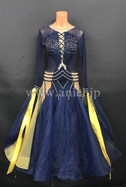 ネイビーにベージュ、黄色が差し色になっています