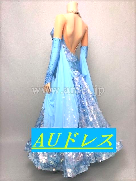 オーロラ色スパンコールが人目を釘付けにする、インパクト大のドレスです。