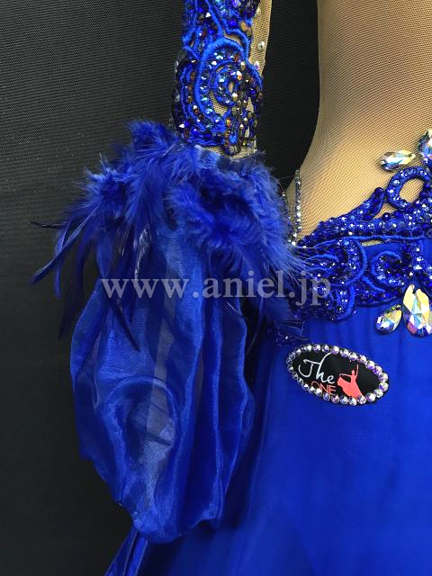 パフスリーブに羽根が飾られています。