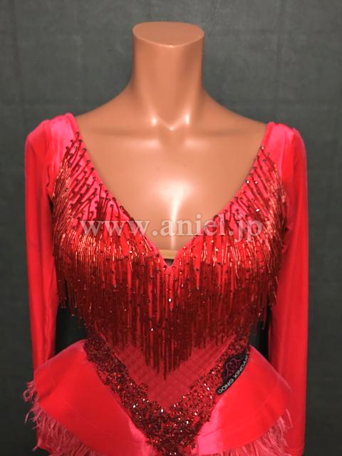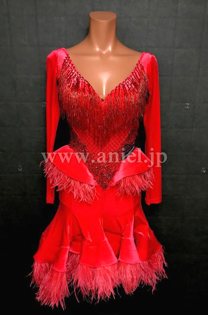 ベルベットの生地に、羽根とビーズフリンジで装飾がされています。