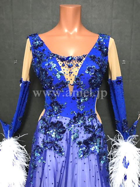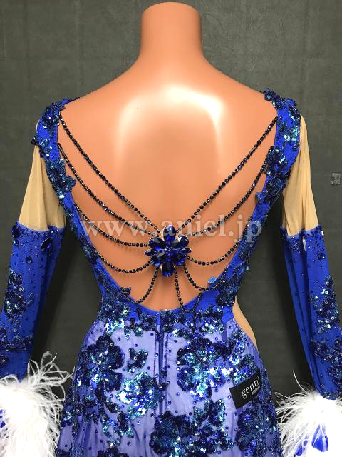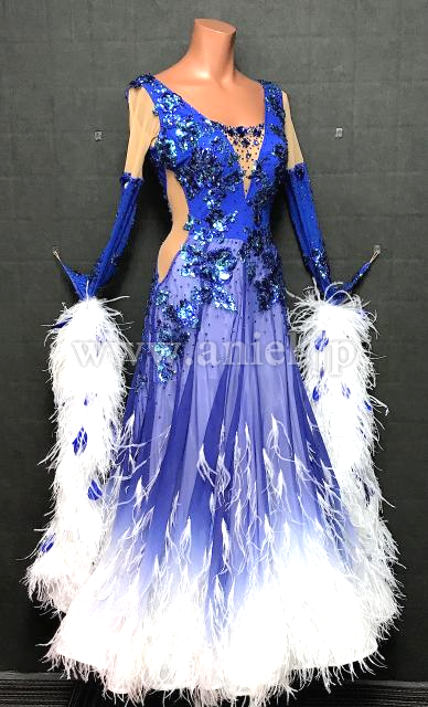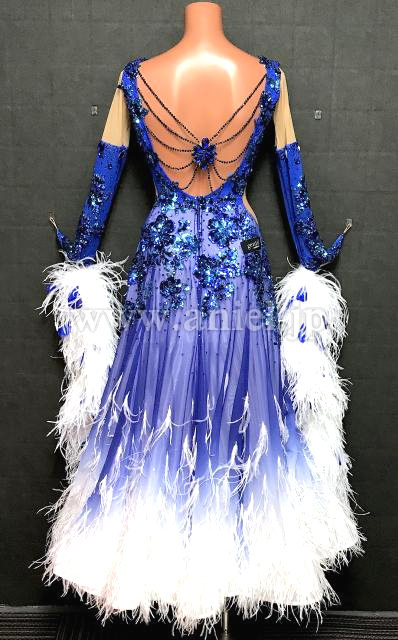 綺麗なブルーに白い羽根がたっぷり使われた豪華なドレス