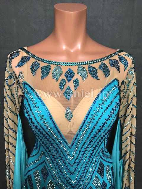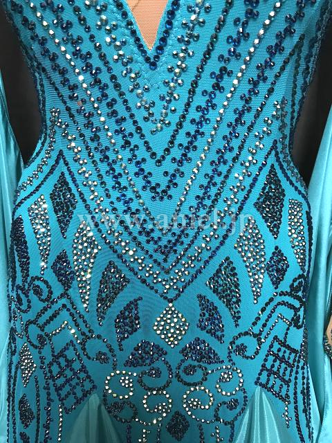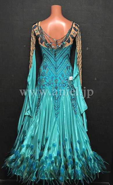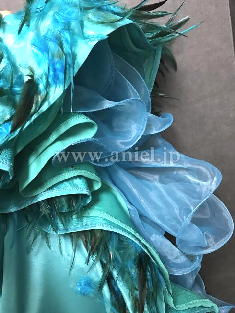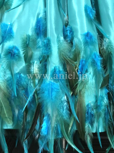 スカートは光沢が綺麗なサテンに裾には羽根がついています