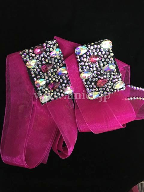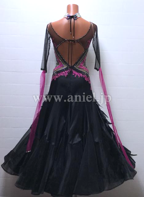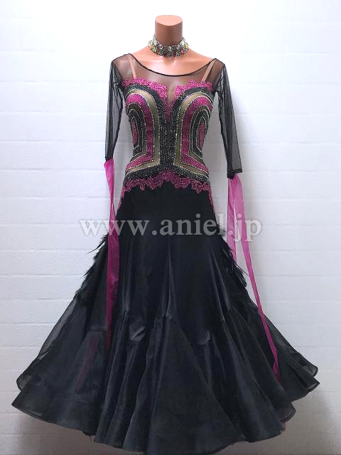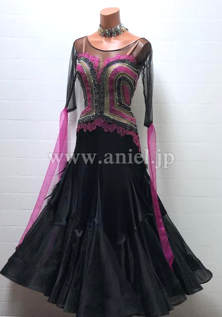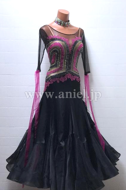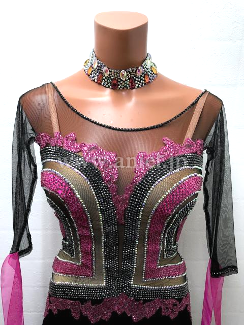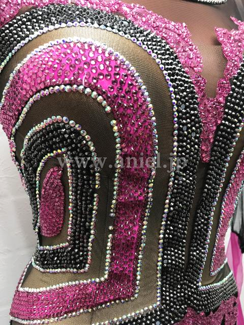 黒のシースルー生地にコルセットのようなデザインで黒とピンクの