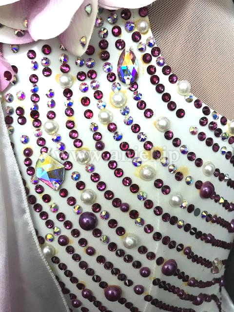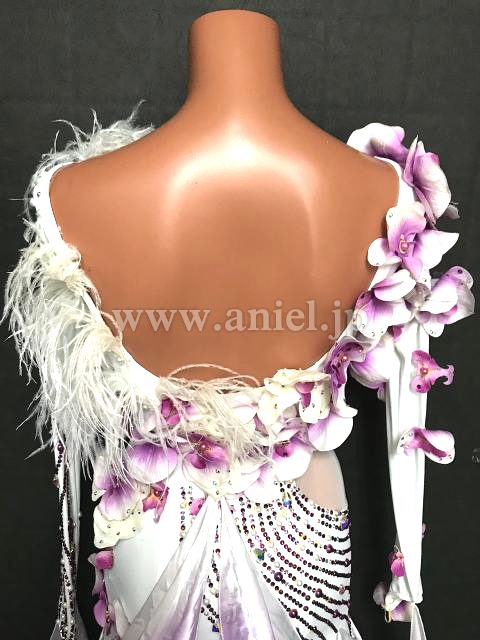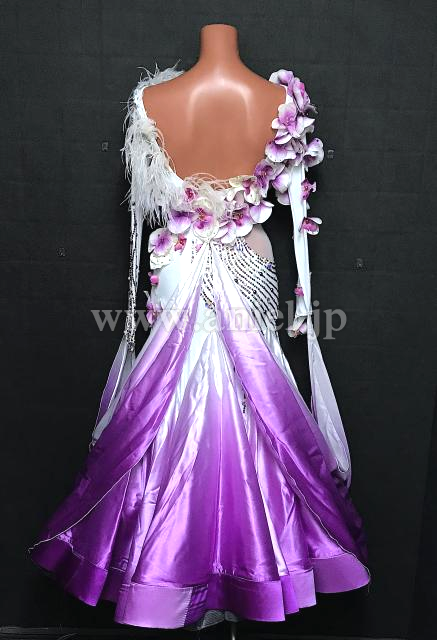 花と羽根の装飾が豪華なドレス
