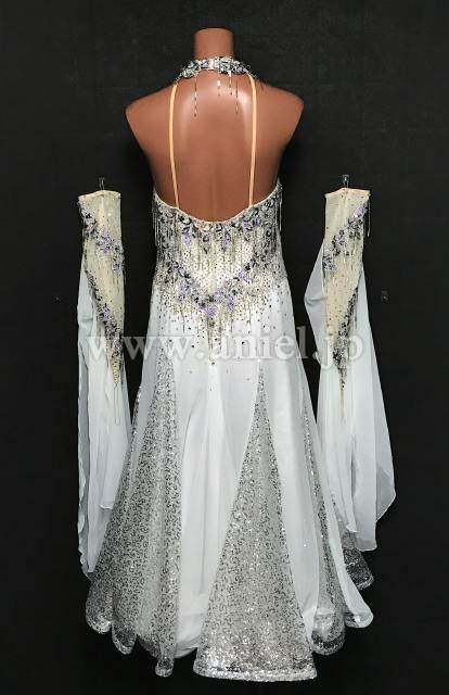 白のホルターネックデザインのドレス