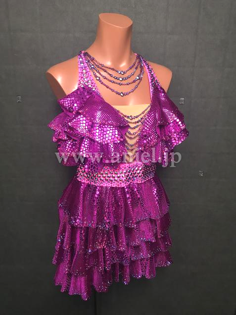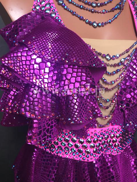 メタリックなクロコダイル調生地が個性的なドレス