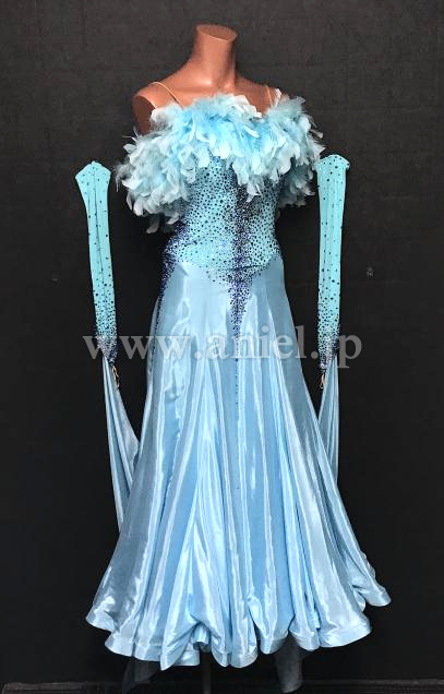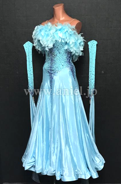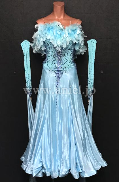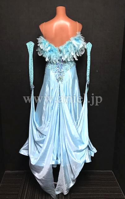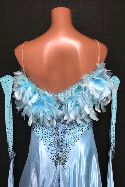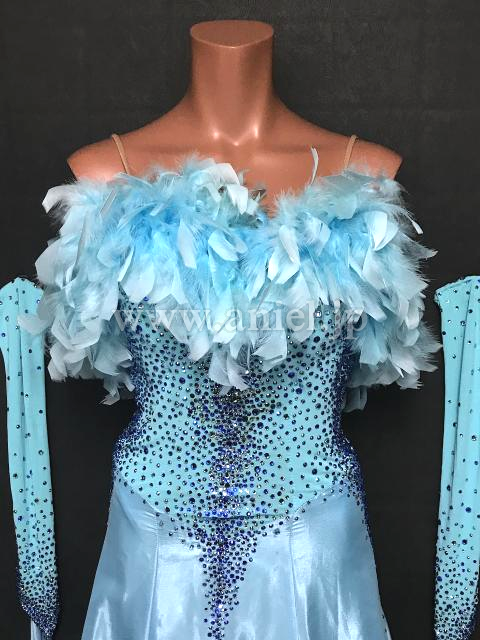 胸元の羽根がボリューミーなドレス
