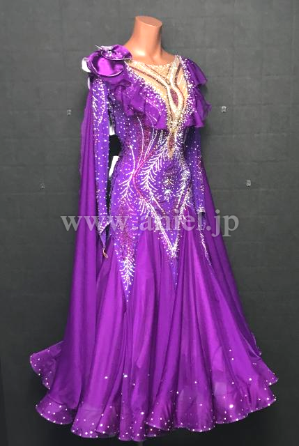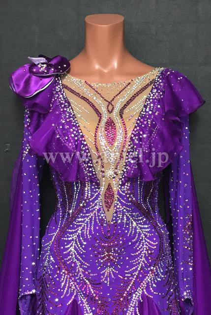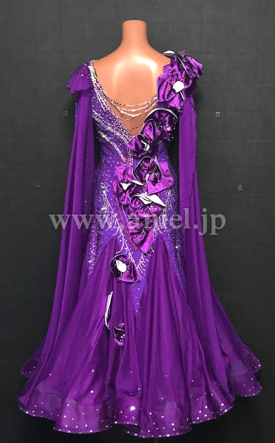 右肩から背中に装飾されたお花のモチーフが目をひきます