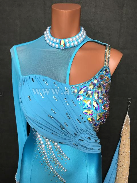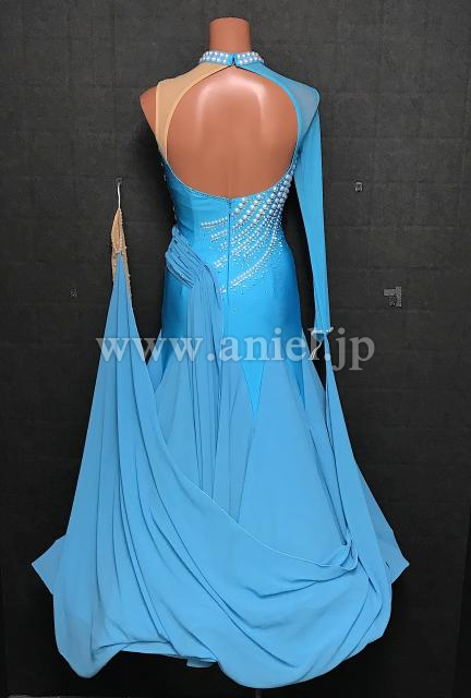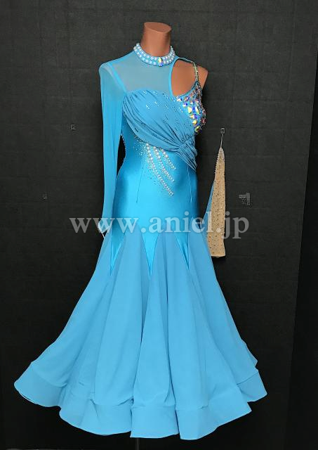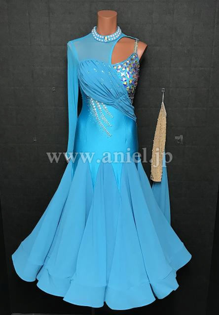 新品のアシンメトリーデザインの水色ドレス