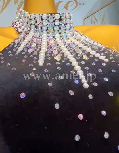 ベルベットボディにパールとオーロラストーンの装飾が映えます。