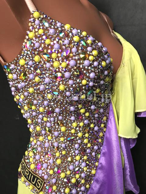 黄色とラベンダーからのパールとストーンがたっぷり装飾されています